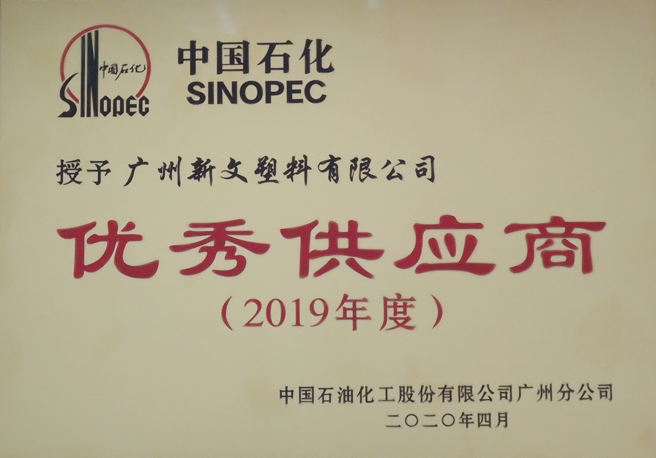 我司再次榮獲中國(guó)(guó)石化年度優(yōu)(yōu)秀供應(yīng)(yīng)商